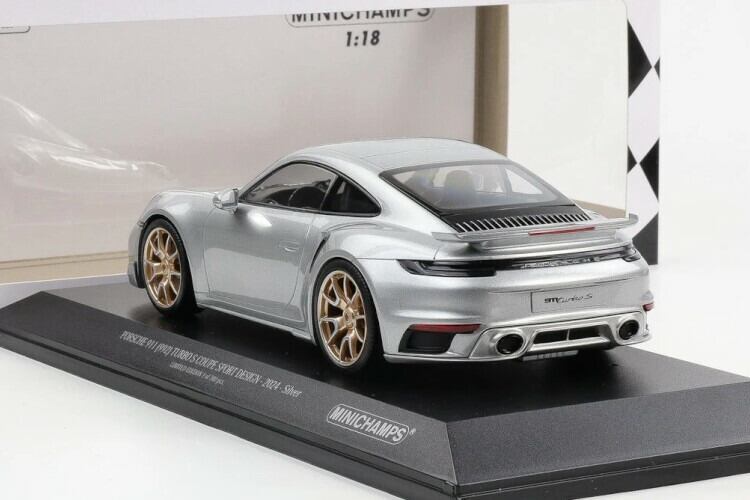 ミニチャンプス 1/18 ポルシェ 911 992 ターボ S クーペ スポーツデザイン 2024 シルバー ゴールドリム 300台限定 Minichamps 1:18 Porsche 911 (992) Turbo S Coupe Sport Design 2024 silver golden rims Limited 300 pcs