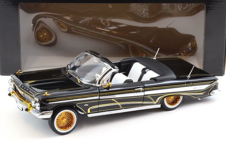 サンスター 1/18 シボレー インパラ ローライダー オープンコンバーチブル 1961 ブラック ゴールド 開閉 Sunstar 1:18 Chevrolet Impala Lowrider open Convertible 1961 black gold